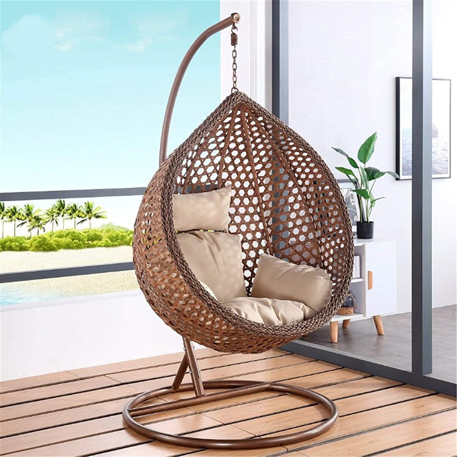 Made from high-quality rattan, this swing chair is not only visually stunning but also built to withstand the elements. It’s resistant to fading, cracking, and weathering — making it ideal for both indoor and outdoor use. Whether you place it in your living room, balcony, garden, patio, or lounge area, this chair promises relaxation in style.